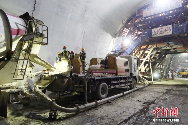 當地時間8月25日,印尼西爪哇省普哇加達縣,隨著最后一板襯砌澆筑完成,雅萬高鐵2號隧道順利完工,全線架梁通道全部貫通。圖為施工現場。 中新社發(fā) 中國電建雅萬高鐵項目部 供圖