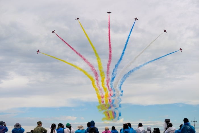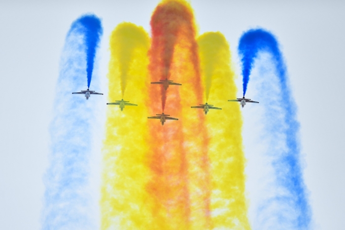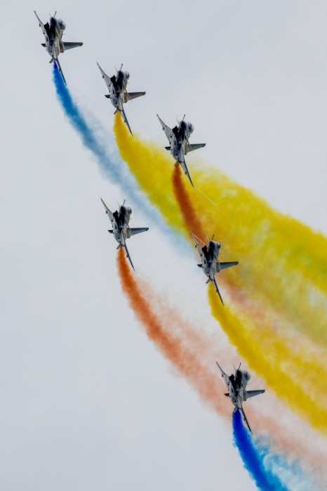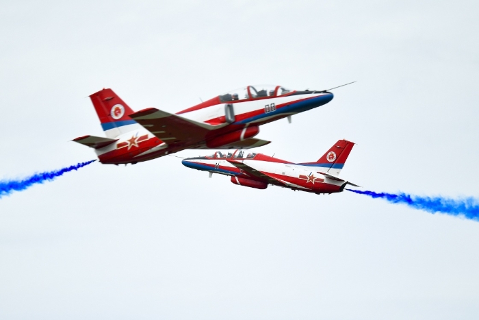 首先進(jìn)行飛行表演的是空軍航空大學(xué)“紅鷹”飛行表演隊(duì)。在為期5天航空開(kāi)放活動(dòng)中,“紅鷹”飛行表演隊(duì)將呈現(xiàn)20套表演動(dòng)作,其中一箭穿心、八機(jī)斤斗,是他們的招牌動(dòng)作?!鞍艘弧憋w行表演隊(duì)6架殲-10飛機(jī)呈現(xiàn)了單機(jī)大仰角躍升,六機(jī)編隊(duì)斤斗、六機(jī)同步橫滾等動(dòng)作,不僅精彩震撼,同時(shí)也具備很高的實(shí)戰(zhàn)價(jià)值。