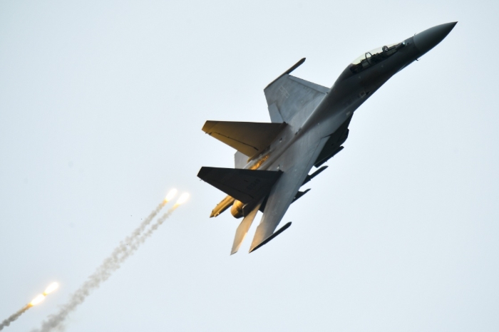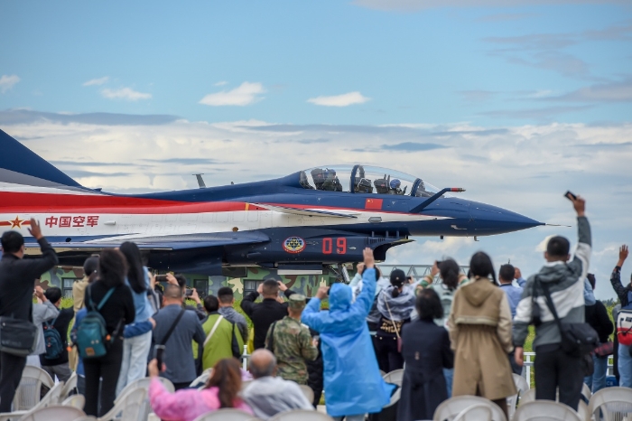 8月26日,在空軍航空開(kāi)放活動(dòng)暨長(zhǎng)春航空展上,空軍殲-16戰(zhàn)機(jī)進(jìn)行單機(jī)空中展示。新華社發(fā)(萬(wàn)全 攝)