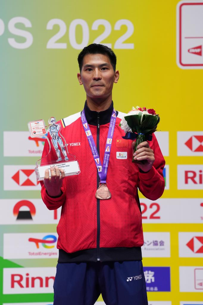 8月28日,男單季軍趙俊鵬在頒獎儀式上。新華社記者 張笑宇 攝
