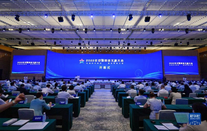 8月28日在國家會展中心(天津)拍攝的2022年中國網(wǎng)絡(luò)文明大會開幕式現(xiàn)場。新華社記者 孫凡越 攝