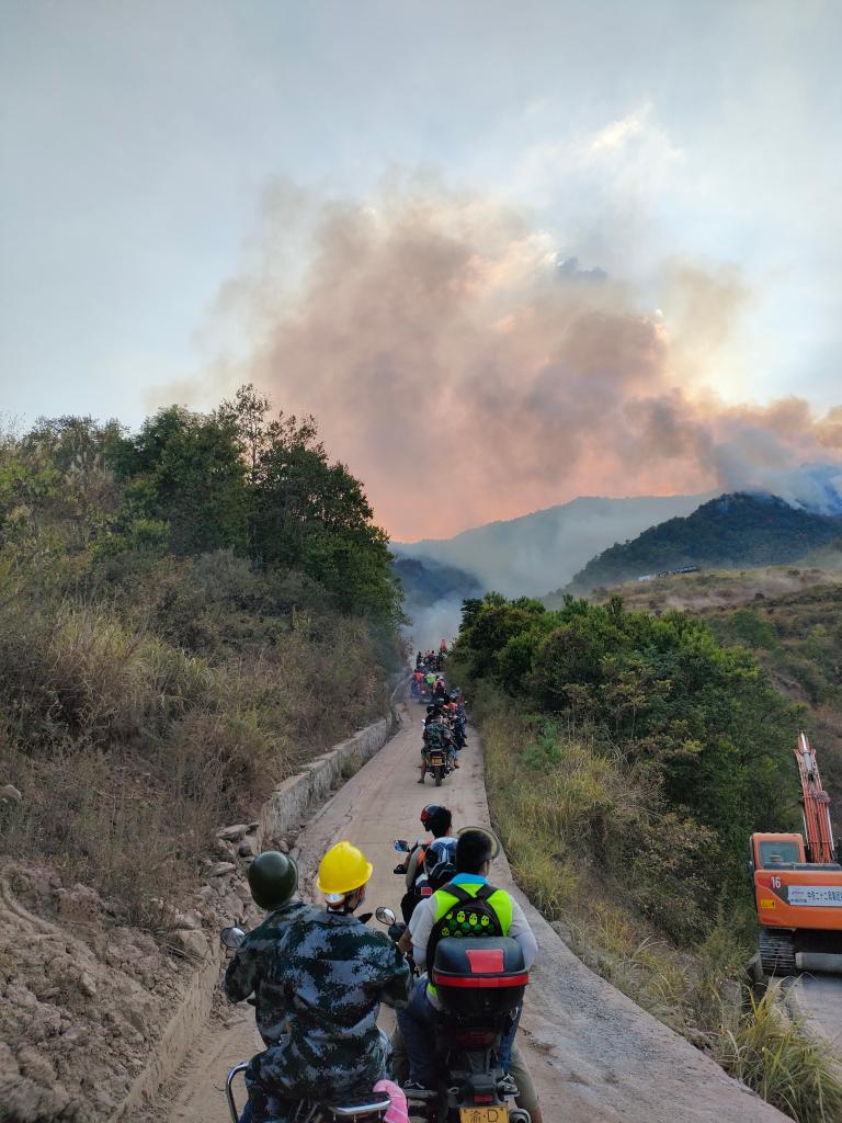 當(dāng)晚7點(diǎn),天色轉(zhuǎn)暗,滅火進(jìn)入“總攻”時(shí)間。一隊(duì)隊(duì)消防隊(duì)員背上專業(yè)裝備再次沖向最前沿,他們也沒(méi)時(shí)間接受采訪。剛還在各處忙活的志愿者們,不約而同停了下來(lái),紛紛給他們讓出通道。