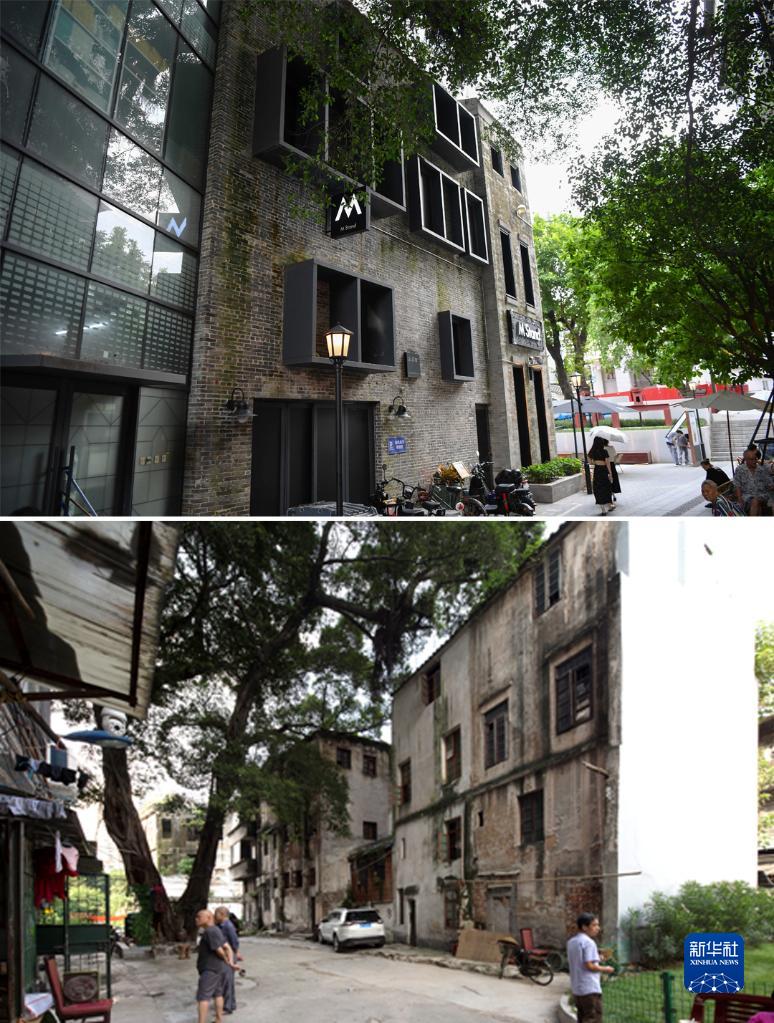 這是一張拼版照片:上圖為2022年7月19日在廣州永慶坊拍攝的一棟建筑(新華社記者 鄧華 攝);下圖為2015年拍攝的同一棟建筑(廣州市荔灣區(qū)住房建設(shè)和園林局供圖)。
