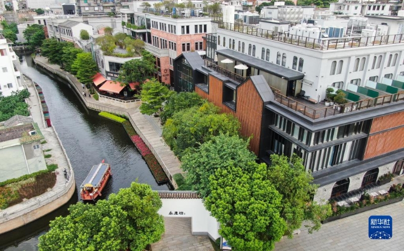 這是2022年7月19日拍攝的廣州永慶坊濱河段(無(wú)人機(jī)照片)。