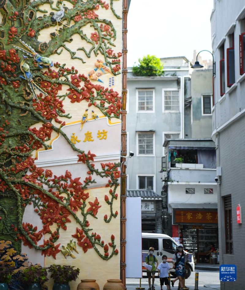 如今,在永慶坊,大片騎樓建筑群受到保護(hù)。青磚瓦房、琉璃彩窗交相輝映,粵劇曲藝、廣彩、廣繡等傳統(tǒng)工藝與活字印刷文創(chuàng)產(chǎn)品等相得益彰。