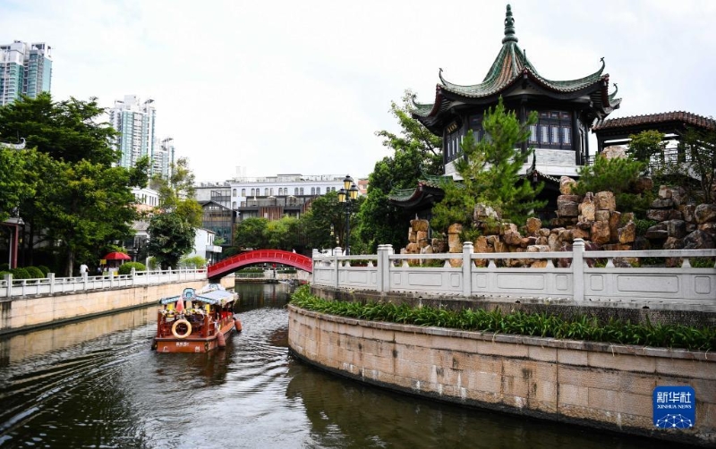 2022年7月19日,游船在廣州永慶坊河道內(nèi)穿行。