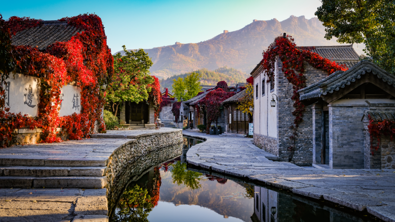 位于京郊密云的古北水鎮(zhèn),距離北京市區(qū)驅(qū)車不足兩小時,直通車、旅游專線、市郊鐵路懷密線等多種交通路線均已開通,可滿足不同游客近距離賞紅葉需求。