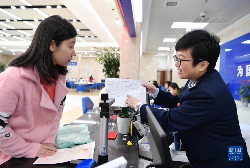 2020年1月21日,工作人員在國家稅務(wù)總局福州市鼓樓區(qū)稅務(wù)局辦稅服務(wù)大廳為企業(yè)財(cái)務(wù)人員介紹減稅申報(bào)表的填寫方法。新華社記者 魏培全 攝
