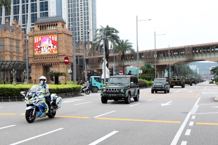 8月29日,輪換車(chē)隊(duì)行駛在澳門(mén)街區(qū)。新華社發(fā)(陳帥攝)