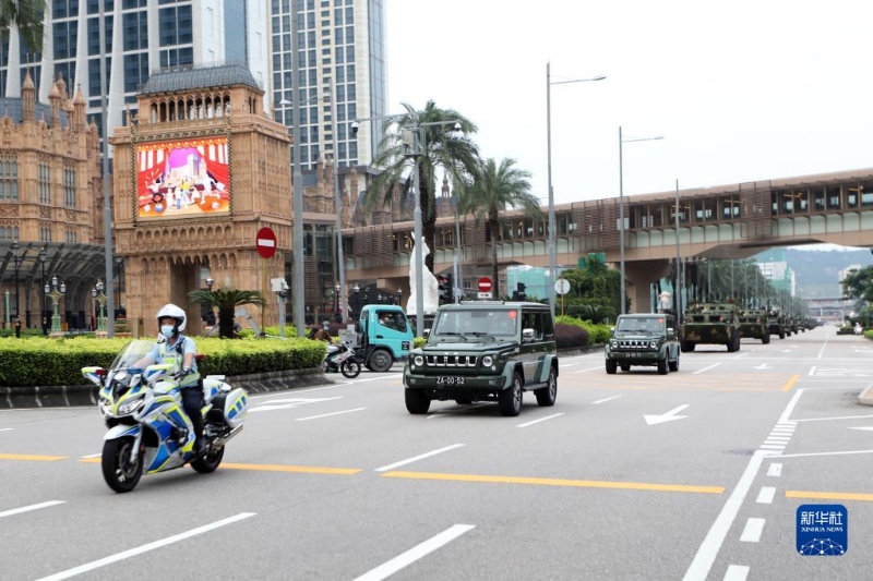 8月29日,換出官兵從澳門氹仔營(yíng)區(qū)出發(fā)。新華社發(fā)(陳帥 攝)
