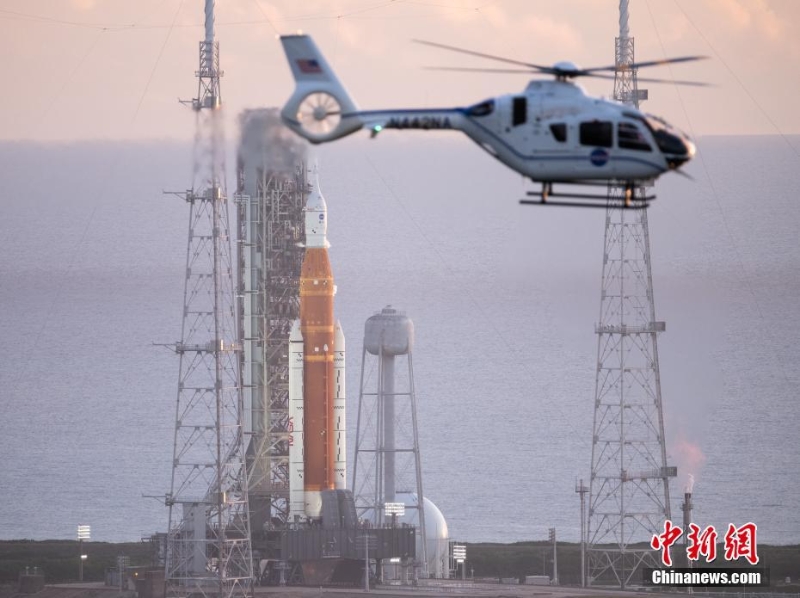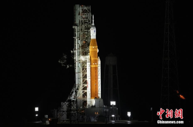 當?shù)貢r間8月29日,美國國家航空航天局(NASA)巨型探月火箭“太空發(fā)射系統(tǒng)”被固定在佛羅里達州肯尼迪航天中心的發(fā)射架上。當日,“太空發(fā)射系統(tǒng)”因故障推遲發(fā)射。 中新社發(fā) NASA/Joel Kowsky 供圖