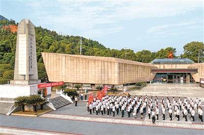 秋收起義95周年到來之際,江西省萍鄉(xiāng)市軍地聯(lián)合組織“重走秋收起義路”行軍活動,進(jìn)一步激發(fā)廣大軍民奮進(jìn)動力。圖為活動人員在秋收起義烈士紀(jì)念碑前獻(xiàn)花致敬。奉啟軍攝