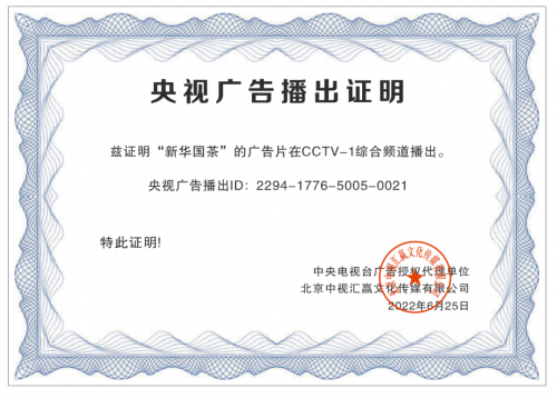 2022年6月,由西安中領(lǐng)網(wǎng)絡(luò)科技有限公司主導(dǎo),新華國茶榮登CCTV1,伴隨廣告片的播放,新華國茶品牌用實(shí)力創(chuàng)造品牌價值,用行業(yè)高品質(zhì)贏得茶人信賴。