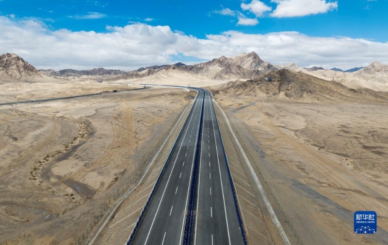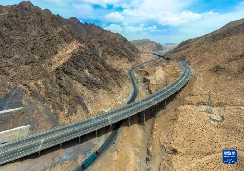 依若高速公路蜿蜒穿越新疆若羌縣山區(qū)(8月6日攝,無(wú)人機(jī)照片)。新華社發(fā)(中國(guó)交建供圖)