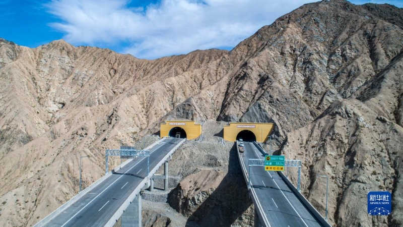 依若高速公路巴什庫(kù)爾干一號(hào)隧道(6月11日攝,無(wú)人機(jī)照片)。新華社發(fā)(中國(guó)交建供圖)