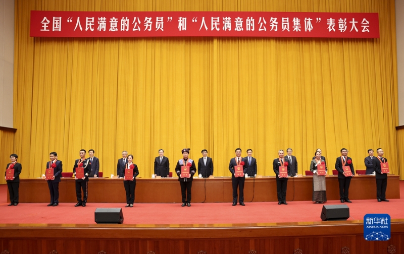 王滬寧在大會上講話。他表示,習近平總書記親切會見受表彰代表,充分體現(xiàn)了黨中央和習近平總書記對公務員隊伍建設的高度重視,對全國“人民滿意的公務員”和“人民滿意的公務員集體”的高度褒獎,對全國廣大公務員的親切關懷。黨的十八大以來,習近平總書記圍繞建設人民滿意的公務員隊伍作出一系列重要論述,為做好新時代公務員工作提供了根本遵循。新征程上,廣大公務員要帶頭旗幟鮮明講政治,帶頭學懂弄通做實習近平新時代中國特色社會主義思想,深刻領悟“兩個確立”的決定性意義,增強“四個意識”、堅定“四個自信”、做到“兩個維護”,始終在政治立場、政治方向、政治原則、政治道路上同以習近平同志為核心的黨中央保持高度一致。要帶頭堅持以人民為中心、做密切聯(lián)系群眾的表率,帶頭貫徹新發(fā)展理念、做推動高質量發(fā)展的表率,帶頭遵守制度、做制度執(zhí)行的表率,帶頭立德修身、做涵養(yǎng)廉潔文化的表率。要加強黨對公務員工作的領導,努力建設一支讓黨放心、讓人民滿意的高素質專業(yè)化公務員隊伍。