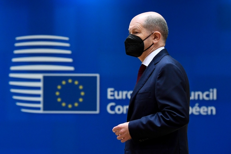 2021年12月16日,德國總理朔爾茨抵達位于比利時布魯塞爾的歐盟總部,準備出席歐盟峰會。新華社發(fā)(歐盟供圖)