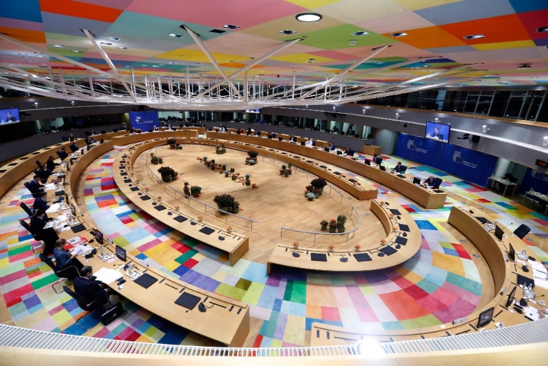這是2020年10月16日在比利時布魯塞爾的歐盟總部拍攝的歐盟秋季峰會會場。新華社發(fā)(歐盟供圖)