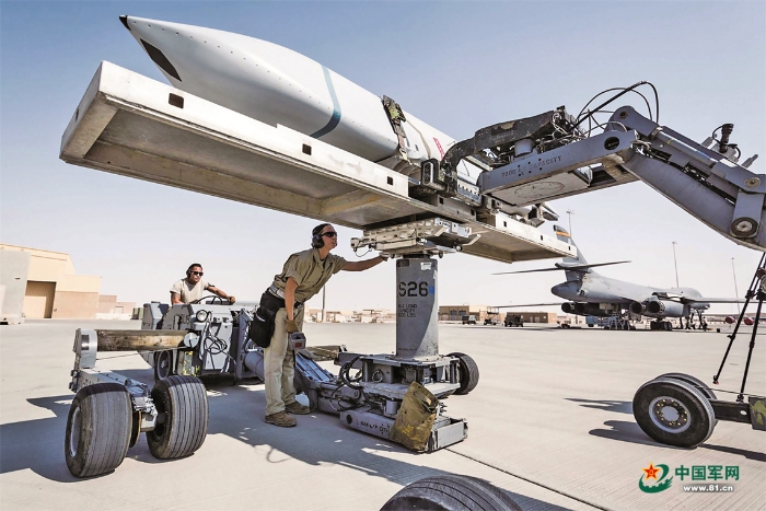 搭載“高功率聯(lián)合電磁非動能打擊武器”的AGM-158B“增程型聯(lián)合空對地防區(qū)外導(dǎo)彈”。