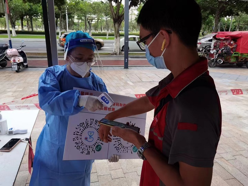 2021年4月,在政府和居委的號(hào)召下,馮秋宜積極響應(yīng)全民接種疫苗工作,迅速組織項(xiàng)目員工有序預(yù)約接種疫苗;同年6月,南沙區(qū)成為疫情高風(fēng)險(xiǎn)地區(qū),在“核酸檢測(cè)志愿者”征集活動(dòng)中,她第一時(shí)間報(bào)名并發(fā)動(dòng)身邊的同事們積極參與,組成“鐵建先鋒隊(duì)”,奔赴一線,為大規(guī)模核酸檢測(cè)工作出力。