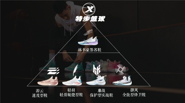 JLIN2 SE是特步繼往開來、具有里程碑意義的一款球鞋,定義了特步籃球的標(biāo)準(zhǔn)。以此開始,特步將針對“速度”這個細(xì)分賽道構(gòu)建自己的產(chǎn)品矩陣。未來除了林書豪簽名球鞋外,將陸續(xù)推出速度型鞋游云、契合夏日的輕質(zhì)敏捷型鞋輕羽、保護(hù)實戰(zhàn)鞋鏖戰(zhàn)、以及全能型鋒衛(wèi)鞋御風(fēng)四大系列,逐步構(gòu)建特步籃球的專業(yè)產(chǎn)品矩陣。