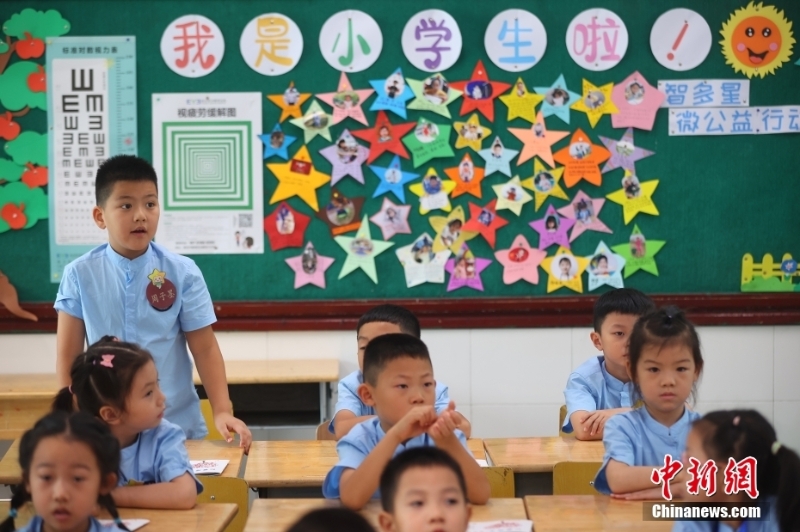 9月1日,江蘇南京,夫子廟小學(xué)的學(xué)生們?cè)谡n堂內(nèi)上課。當(dāng)日,南京市中小學(xué)正式開學(xué)。 中新社記者 泱波 攝