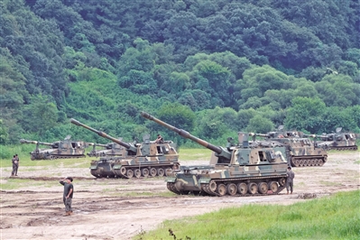 8月22日,韓軍K-9自行榴彈炮進入演習陣地。