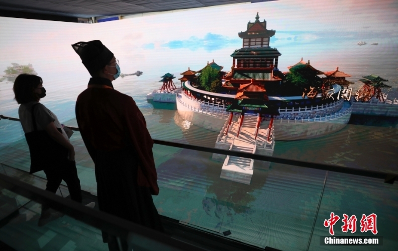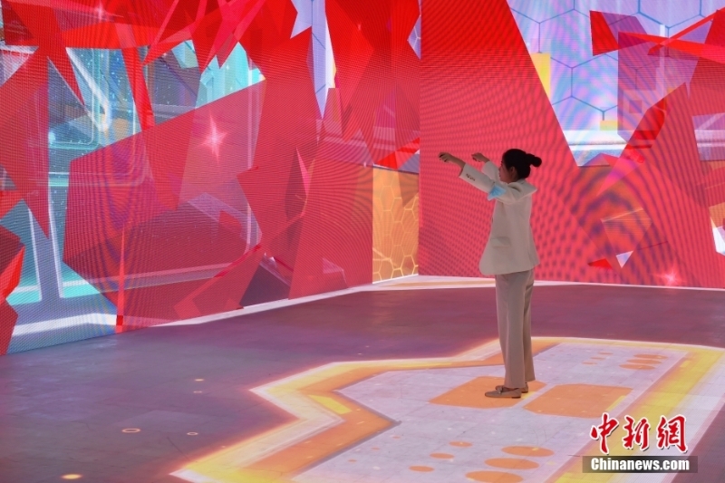 9月2日,北京,觀眾在2022年服貿(mào)會(huì)首鋼園展區(qū)《千機(jī)圓明》沉浸式體驗(yàn)空間感受場(chǎng)景穿梭的視覺盛宴。 中新社記者 趙雋 攝