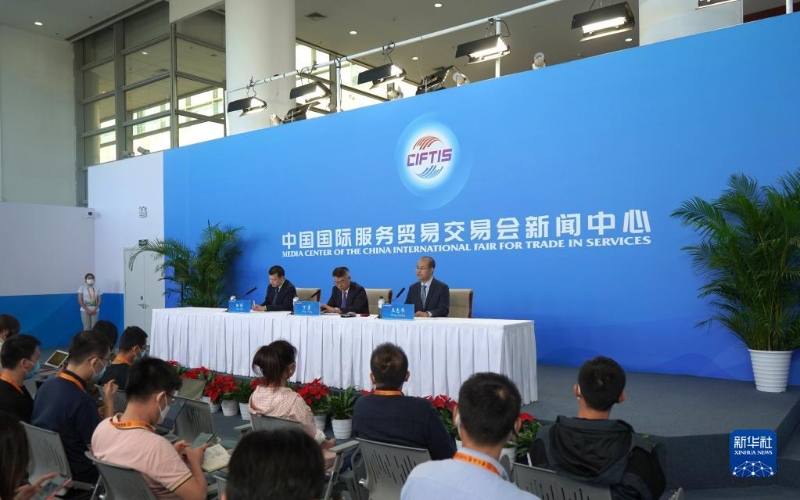 這是9月5日拍攝的2022年中國(guó)國(guó)際服務(wù)貿(mào)易交易會(huì)新聞發(fā)布會(huì)現(xiàn)場(chǎng)。新華社記者 金皓原 攝