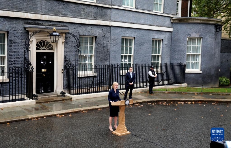 9月6日,在英國(guó)倫敦唐寧街10號(hào)的首相府,新就任的英國(guó)首相伊麗莎白·特拉斯(前)發(fā)表講話。新華社發(fā)(史蒂芬·程攝)