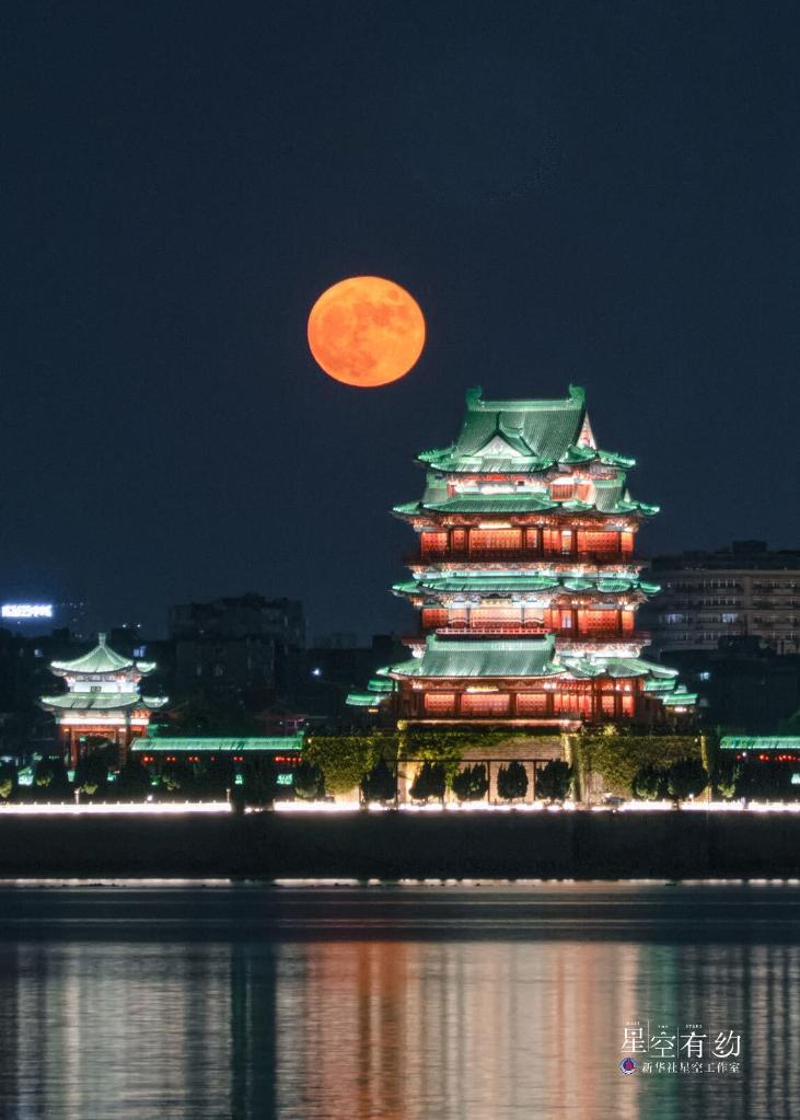 江西省天文愛好者沈霖2021年9月21日(農(nóng)歷八月十五)在南昌滕王閣拍攝的中秋月。(本人供圖)