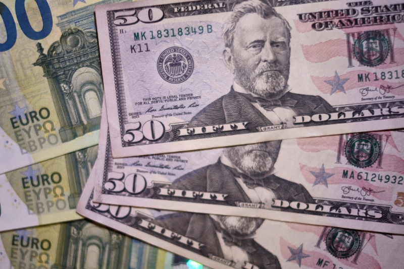 這是8月23日在西班牙馬德里拍攝的歐元和美元紙幣。新華社記者孟鼎博攝