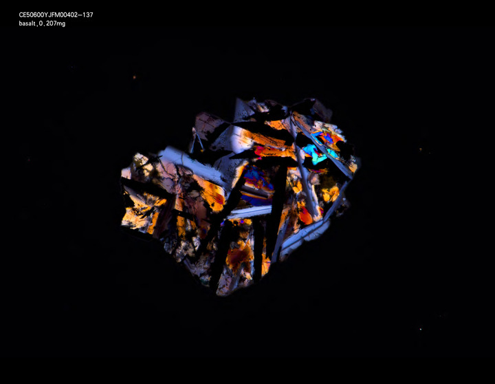 在一種名為正交偏光顯微圖像中,人們能看到月壤顆粒中礦物形成色彩斑斕的圖案,有花、有蝴蝶、有星星……