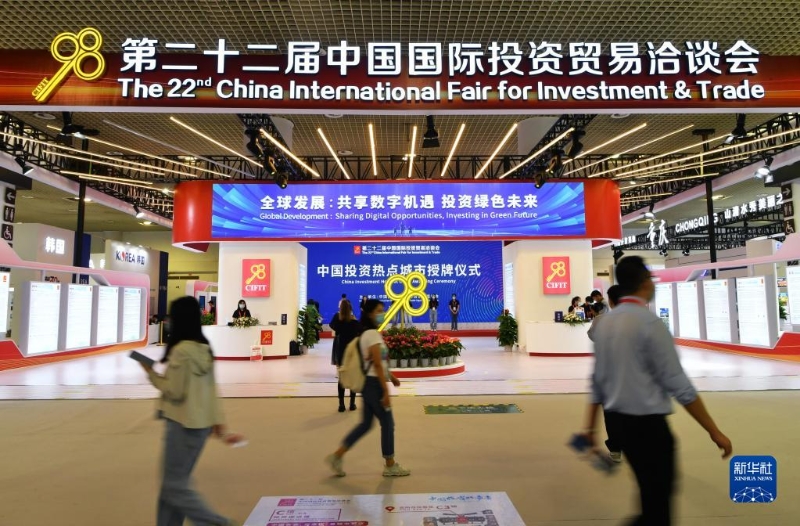 2022年9月8日拍攝的第二十二屆投洽會展館現場。當日,以“全球發(fā)展:共享數字機遇、投資綠色未來”為主題的第二十二屆中國國際投資貿易洽談會(簡稱“投洽會”)在福建廈門開幕。新華社記者 魏培全 攝