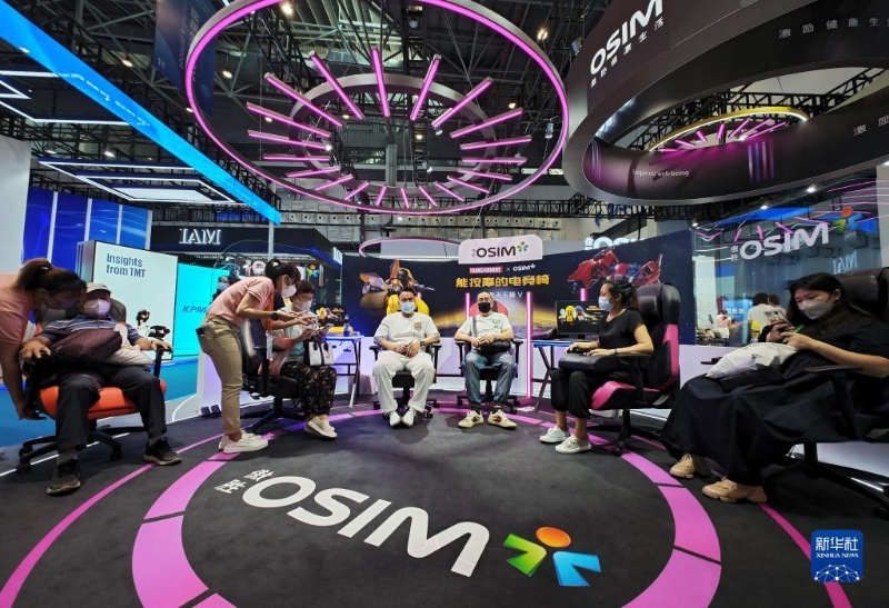觀眾在第二屆中國國際消費品博覽會上體驗按摩電競椅(2022年7月28日攝)。新華社記者 郭程 攝