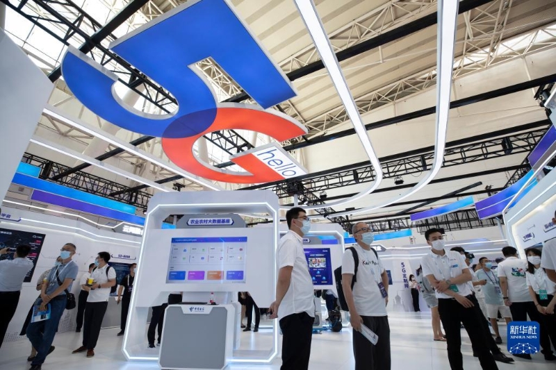 在2022世界5G大會中國電信集團(tuán)有限公司展區(qū),參觀者現(xiàn)場了解5G產(chǎn)品(2022年8月10日攝)。新華社記者 張濤 攝