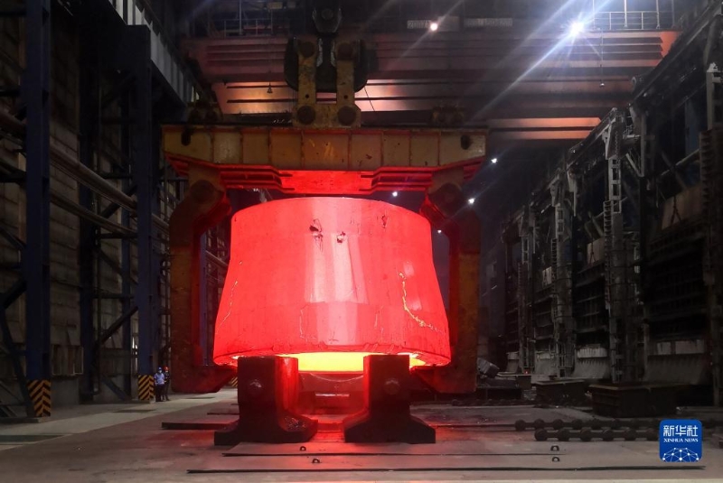 中國一重制造的世界最大異形加氫筒體鍛件(2022年8月30日攝)。新華社發(fā)(劉凱泉 攝)