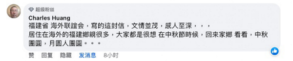 月是故鄉(xiāng)明,天南海北的福建游子在中秋之夜共同思念著離自己或遠(yuǎn)或近的故土。中秋“家書”的發(fā)布,也得到海外華人社團(tuán)和個人的積極轉(zhuǎn)發(fā)。同時,在國際日報、澳華電視傳媒、歐洲華文電視臺、日本龍之昇中文臺、菲中電視臺、中華時報、香港商報、大灣區(qū)時報等超80家海外華文媒體推送報道。
