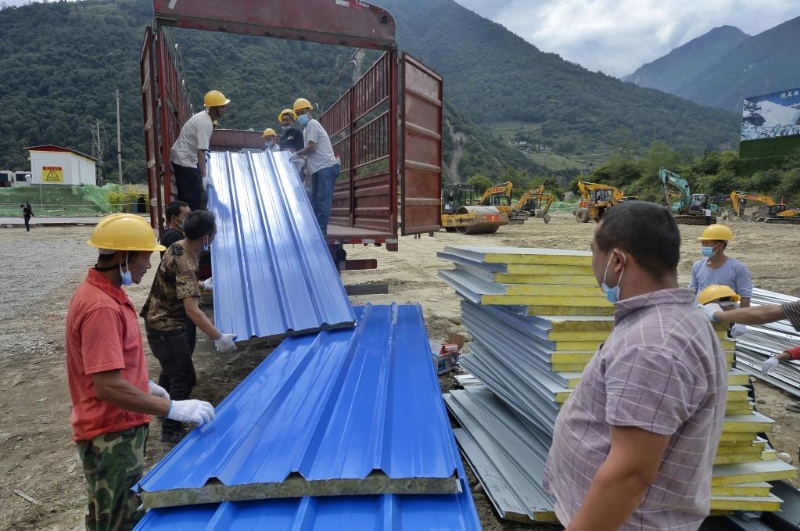 湛明秋介紹,這處安置點(diǎn)是瀘定縣磨西鎮(zhèn)地震災(zāi)區(qū)啟動(dòng)建設(shè)的安置點(diǎn)小區(qū)之一,占地9000平方米,將建設(shè)170間各式板房,能為約300名群眾提供過渡性住房?!拔覀兪褂昧朔阑鸬燃堿級的75毫米巖棉板,除了建設(shè)居住用房之外,還將建設(shè)公共衛(wèi)生間、24小時(shí)供應(yīng)熱水的公共浴室、洗衣房、廚房、超市、醫(yī)療站等,整個(gè)安置點(diǎn)就是一個(gè)功能完備的小型社區(qū)。”