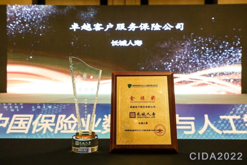 2022年9月7日,第四屆中國(guó)保險(xiǎn)業(yè)數(shù)字化與人工智能發(fā)展大會(huì)暨“金保獎(jiǎng)”頒獎(jiǎng)典禮在上海隆重舉辦。長(zhǎng)城人壽憑借“智享型服務(wù)模式”榮膺“卓越客戶服務(wù)保險(xiǎn)公司”大獎(jiǎng)。