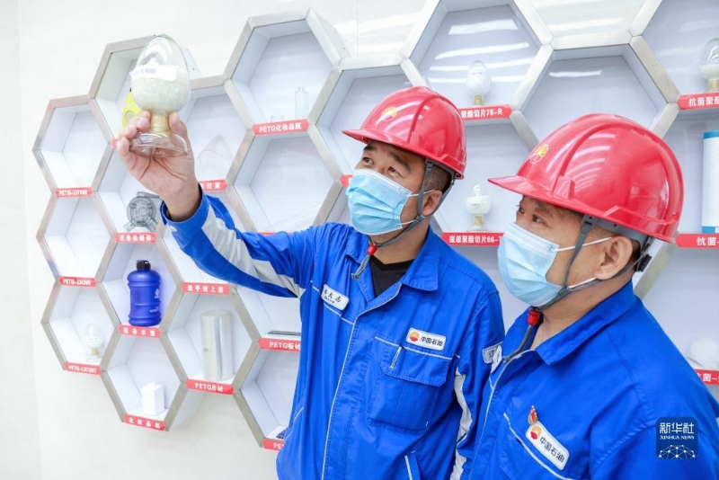 2022年9月5日,在中國(guó)石油遼陽(yáng)石化公司,員工在查看產(chǎn)品。新華社記者 楊青 攝