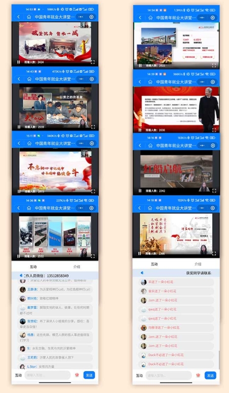 受疫情影響,本年度中國青年就業(yè)大講堂以線上+線下雙線并行的創(chuàng)新方式,為同學(xué)們講解沂蒙精神的永恒魅力。魯南制藥集團(tuán)代表“云端”走進(jìn)8場線上創(chuàng)意宣講、3場線上專屬“沂蒙精神”思政課堂,與9萬+青年學(xué)子相聚直播間,雙向互動(dòng),瘋狂刷屏。
