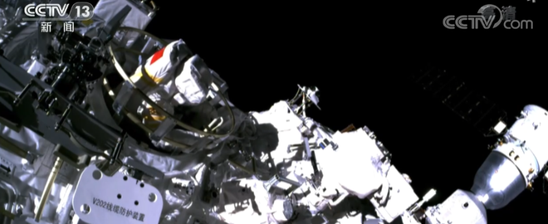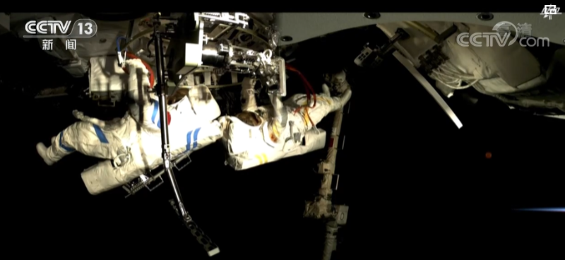 在航天員陳冬的配合下,蔡旭哲完成了腳限位器和艙外工作臺的安裝。