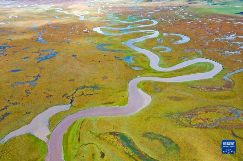 這是瑪曲縣阿萬(wàn)倉(cāng)濕地內(nèi)的河流和沼澤(9月17日攝,無人機(jī)照片)。