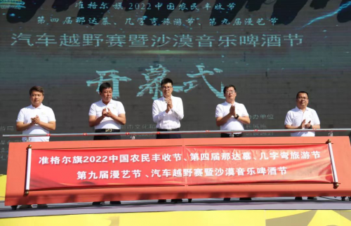 張亞男在致辭中指出,近年來,準(zhǔn)格爾旗著力盤活沿黃旅游資源,立足以黃河大峽谷為核心的黃河風(fēng)情旅游度假游,以庫布齊沙漠汽車賽事為首的沙漠汽車運(yùn)動游,以準(zhǔn)格爾召、油松王為主的民俗祭祀游,以黑岱溝露天煤礦、大路煤化工基地為主的現(xiàn)代工業(yè)體驗(yàn)游,以百里長川、龍口為主的特色小鎮(zhèn)美麗鄉(xiāng)村游,構(gòu)筑起“一帶四游”全域旅游格局。同時,開發(fā)大口尋根、納林街市、長灘廟會等鄉(xiāng)村旅游產(chǎn)品,培育了國禮陶瓷、手工地毯、高原杏仁露、農(nóng)鄉(xiāng)豐等旅游商品,擴(kuò)大了旅游商品有效供給。此外,濃墨重彩挖掘地區(qū)的歷史故事和紅色文化資源,開發(fā)魏家峁黨總支部活動遺址、馬柵區(qū)委展廳、葫蘆頭梁黨小組活動遺址等紅色旅游景點(diǎn),推出系列紅色旅游精品線路。打造了大路水上公園、薛家灣塔哈拉川濱河樂園、湖東智慧公園、小灘子“稻漁空間”等多處網(wǎng)紅打卡地,舉辦了紅色旅游推介會、無人機(jī)燈光秀表演、旅游商品展示展銷等活動,組織演藝、文創(chuàng)、旅游商品、非遺、圖書、紅色文化“六進(jìn)”景區(qū)行動,豐富文化旅游產(chǎn)品,為景區(qū)“景”上添花。本次沙漠汽車摩托車越野場地賽旨在為全國沙漠賽車專業(yè)選手及愛好者提供一個展示自我、自由競技的舞臺。準(zhǔn)格爾旗將當(dāng)好東道主,待好八方客,全力做好服務(wù)保障工作,努力將本次賽事辦成團(tuán)結(jié)、和諧、進(jìn)步的體育盛會,辦成競技、交流的友誼盛會。