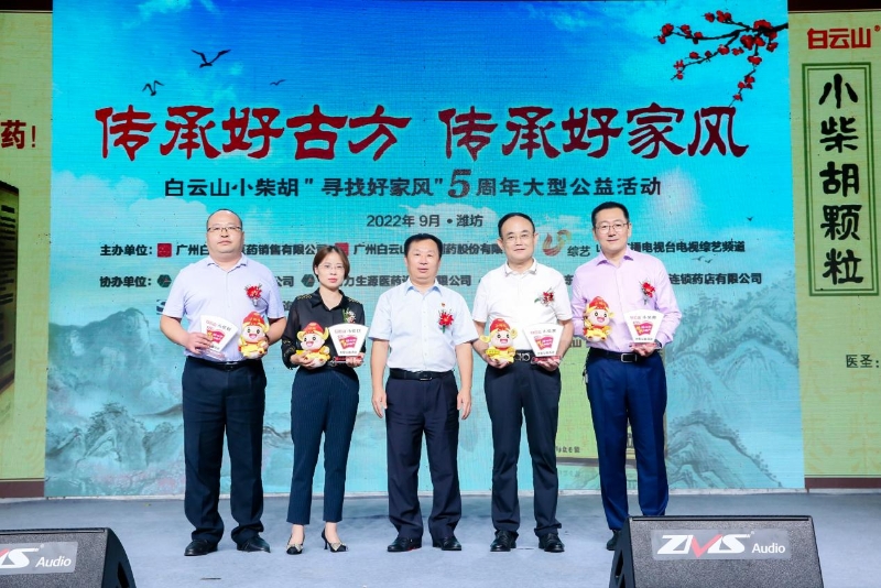 本次活動(dòng)由廣州白云山醫(yī)藥銷(xiāo)售有限公司、廣州白云山光華制藥股份有限公司聯(lián)合山東廣播電視臺(tái)電視綜藝頻道共同主辦,山東華濰醫(yī)藥有限公司、濰坊力生源醫(yī)藥連鎖有限公司、山東濰坊海王星辰民康連鎖藥店有限公司、濟(jì)南三立企業(yè)管理咨詢(xún)有限公司共同協(xié)辦。厚道齊魯?shù)孛赖律綎|人,白云山小柴胡“尋找好家風(fēng)”公益活動(dòng)旨在齊魯大地尋找優(yōu)良家風(fēng),向全社會(huì)傳播愛(ài)的正能量。