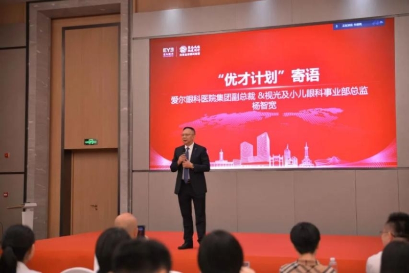 儀式中,集團領(lǐng)導(dǎo)分別向第一期、第四期學(xué)員頒發(fā)結(jié)業(yè)、入學(xué)證書,學(xué)員代表李婷婷、呂剛相繼上臺發(fā)言,新老學(xué)員傳承授予了入學(xué)徽章。陳邦董事長親自為第四期學(xué)員授予入學(xué)旗幟。愛爾眼科“優(yōu)才計劃”人才培養(yǎng)項目創(chuàng)立于2018年。首批“優(yōu)才計劃”招募發(fā)布后,共有來自全國各地近百名視光師、驗光師及小兒眼科醫(yī)生報名,最終20名優(yōu)秀學(xué)員在2018年的橘洲論壇上入選。在這些學(xué)員中,不乏經(jīng)驗資深的視光人員,也有從業(yè)不久的年輕視光新血液?!皟?yōu)才計劃”推出后,愛爾眼科每年都會優(yōu)選出多名視光與小兒眼科領(lǐng)域的優(yōu)秀青年人才進行培養(yǎng),目前已經(jīng)持續(xù)選拔了四期學(xué)員進入該計劃。作為愛爾眼科持續(xù)發(fā)展戰(zhàn)略中的人才培養(yǎng)計劃,“優(yōu)才計劃”旨在通過設(shè)立新技術(shù)、新進展、多元文化、國際視野等系列課程,創(chuàng)建“集中培訓(xùn)+在崗研修+小組互動+導(dǎo)師指導(dǎo)+基地訪學(xué)+公益實踐+成果展示”的多階遞進混合式學(xué)習研修模式,培養(yǎng)一批專業(yè)技能突出并具備綜合管理能力的視光領(lǐng)域復(fù)合型人才,從而有效緩解國內(nèi)視光與小兒眼科高水平人才不足的現(xiàn)狀,助力國家青少年近視防控和視覺健康事業(yè)的發(fā)展。
