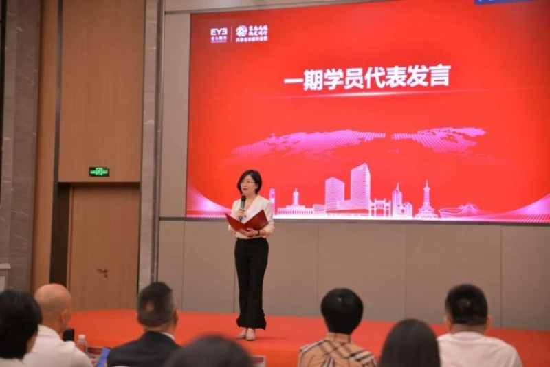 第一期學(xué)員代表李婷婷在臺上發(fā)言