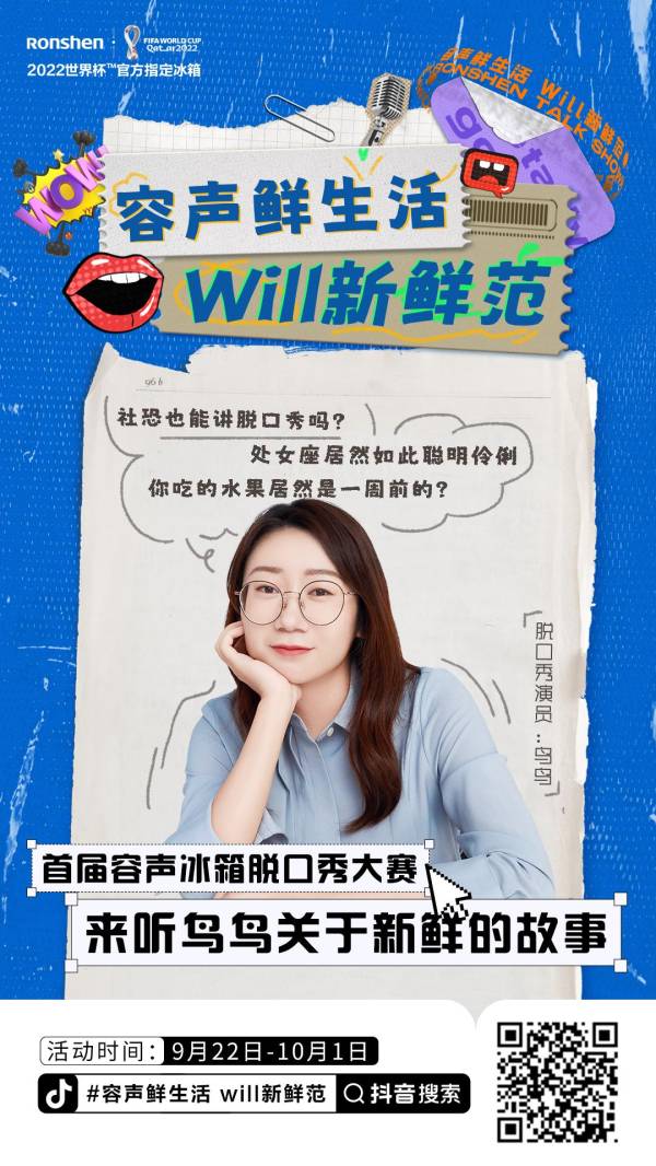 近年來,因?yàn)橥ㄟ^幽默風(fēng)趣的段子展現(xiàn)生活百態(tài),治愈人們壓抑的心情,脫口秀節(jié)目一夜爆火。9月22日,“容聲鮮生活 will新鮮范”首屆脫口秀全國挑戰(zhàn)賽正式開賽。此次大賽,容聲WILL健康冰箱不僅為粉絲們打造了一個專屬“幽默”的舞臺,而且還有現(xiàn)金大獎可以拿偶!