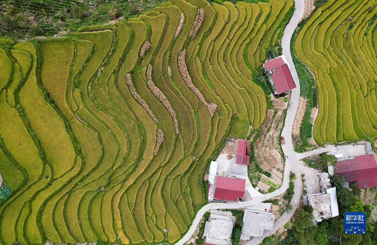 9月14日,貴州省大方縣小屯梯田顆粒飽滿的稻穗。新華網(wǎng)發(fā)(周訓(xùn)貴 攝)